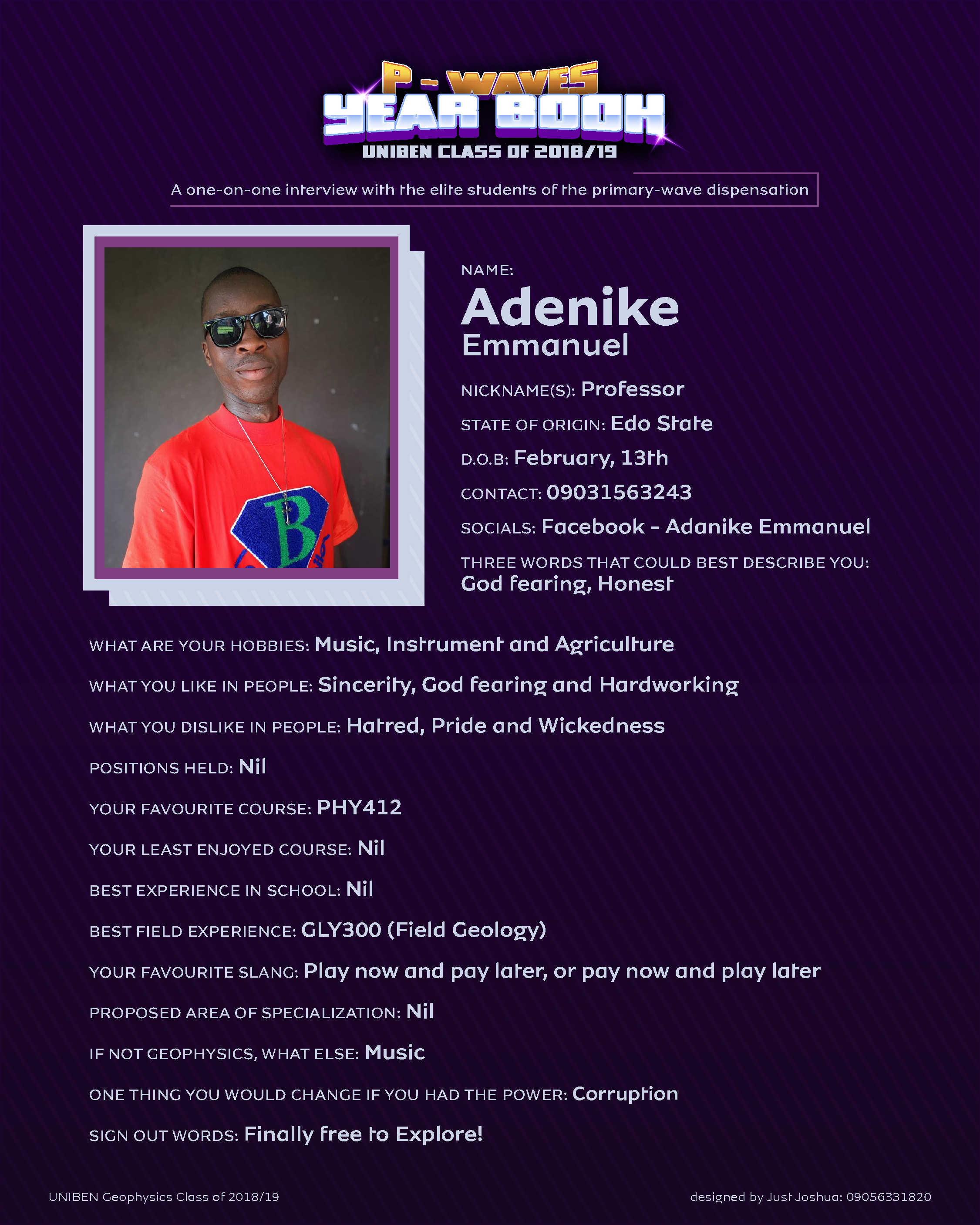 | Serial No | Names | Profile | 1 | Peter Emmanuel ADENIKE |